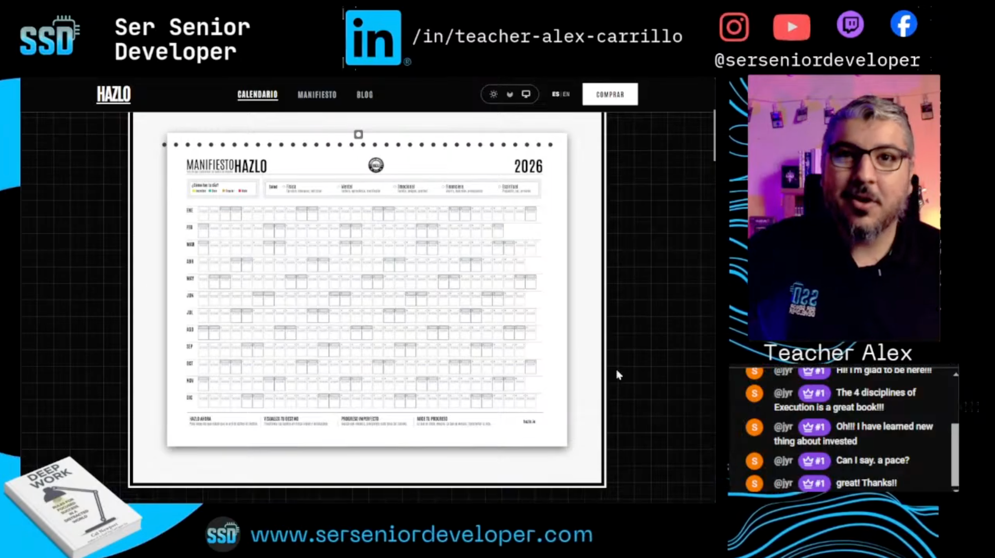 Mi profesor de inglés estaba leyendo Deep Work en vivo con su comunidad. Llegó al capítulo sobre scoreboards y disciplina personal. Y en ese momento, decidió mostrar el Calendario HAZLO.